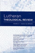 The latest volume of Lutheran Theological Review has arrived from the printers and will be in the mail to all pastors in Lutheran Church-Canada (and other subscribers) shortly. The journal is jointly produced by Concordia Lutheran Theological Seminary, St. Catharines, and Concordia Lutheran Seminary, Edmonton. Volume 22 includes a study produced by Professor William Mundt on sabbatical, as well as other writings of Canadian and international Lutherans: