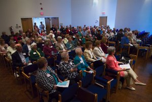 While the autumnal Harvest Day usually welcomes an educational or inspirational speaker, the spring gathering leans towards entertainment. The group were thrilled to have Pastor Ron and Karen Mohr delight them with vocal and piano music that ran the gamut from traditional choral and contemporary Christian songs to jazz, swing, and a medley from the Dr Seuss musical. Something for everyone!