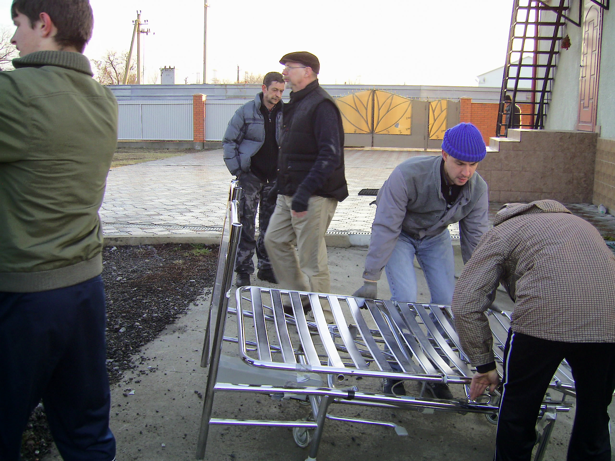 My orientation to Odessa began as Pastor Schewtschenko greeted me at the small airport. The first surprise was to learn that the Odessa seminary is not in Odessa at all, but in an almost rural suburb. This made the building costs a lot lower, and activities have operated out of this location for only the last year and a half. I had arrived a few days early to get oriented and discovered the centre’s rooms were mostly occupied by young people from all across the Ukraine. Bishop Viktor Gräfenstein had organized yet another social outreach effort. Over the course of five days the young people would distribute bags of candy and treats (each also included a toothbrush and a tube of toothpaste) to children in orphanages both near and farther away. Social ministry is a big part of the outreach. Class was cut short Thursday, 12 January, to allow students and professor to help unload a large truck with donated clothing, hospital equipment, toys, etc., donated from people in Sweden and finally cleared after three months in customs here.