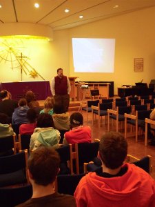 During March Break week, 20 confirmands from 7 East District congregations met at Concordia Lutheran Theological Seminary for the annual Confirmands’ One-Day Retreat. The theme of the day’s activities was the signs and symbols of the Christian faith. The confirmands worshipped in the seminary chapel, heard a presentation on Christian symbolism, toured the building, and then enjoyed an afternoon of swimming at the Brock University Athletic Centre. A pizza lunch topped off a great day of faith-building and fun.