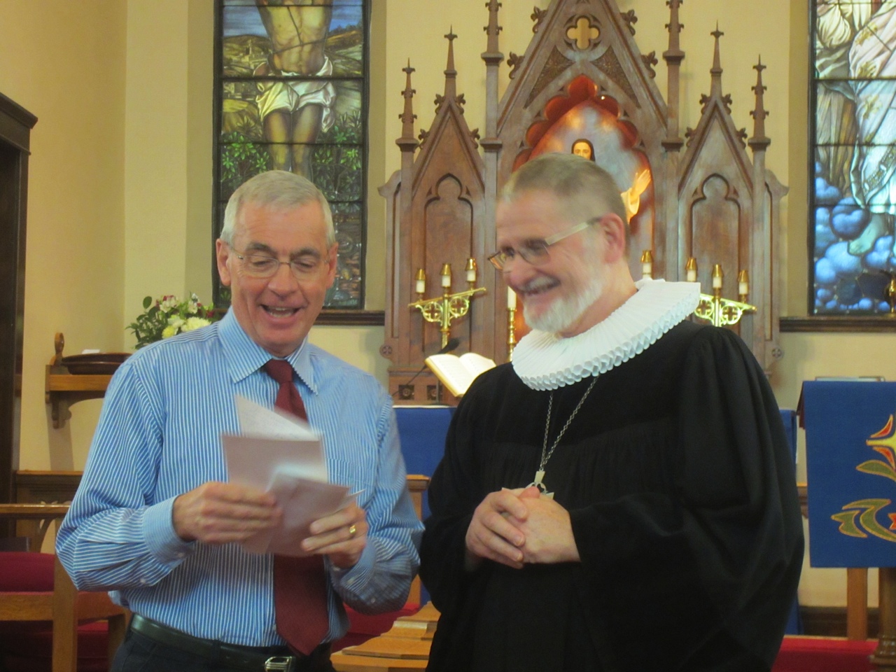 Having served at Trinity in (Old!) Hamburg in Germany for over 16 years, Torgy wore the traditional vestments of the clergy in Hamburg. He has been asked to serve for four weeks the vacancy at Trinity (back in Germany) from mid-December to mid-January. The members of St. Peter’s in New Hamburg gave a special offering for the Student Aid Fund of the seminary.