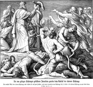 “Now is the judgment of this world, now shall the ruler of this world be cast out; and I, when I am lifted up from the earth, will draw all men to Myself” (Jn 12:31-32). Christian artwork through the ages has highlighted the comparison with Christ’s cross by drawing a horizontal piece onto the pole that held the bronze serpent. But the prophecy runs so much deeper than physical similarity. I can’t recall a time in my life when, like the poison of the snakes that rampaged through the camp of Israel, sickness has so deeply and broadly struck our families and our churches. Stroke, cancer, heart disease, diabetes, depression, and mental illness—every week we seem to hear of another dear one struck by these venoms. And venom is just the right image, for these aren’t just bad fortune. These attacks come from the great Serpent who nips constantly at our heels, who waits around every corner to strike. He wants us to lose faith. He doesn’t want us to look up to the cross of Christ and live. He wants us to despise Christ and despair, to look down on the cross as an empty, powerless symbol.