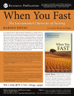 Since joining the CLTS faculty in 2017, Dr Harold Ristau has taken on responsibility for (among many other things) the “practical” courses that teach such skills as preaching and pastoral practice. His interest in pastoral care has emerged in a series of short publications, the latest of which, When You Fast: The Sacramental Character of Fasting, has just been released by Wipf and Stock Publishers, with a foreword by seminary President Dr Thomas Winger. From the press release: