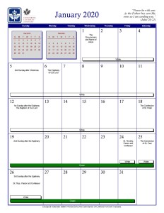 This year we are trialling a different approach. Rather than printing and mailing, we are offering a pdf file of the calendar for you to download and print for yourself. While this saves on costs, it also offers certain advantages. The calendar can be printed in colour, making it easier to see the liturgical colour of the day or season. Each month fills one letter-sized page–slightly larger with more room to write than the old posters. If you do not have room for a large poster on the wall, it can be hung one or two months at a time. Or the pages can be posted side by side to see six months or even the whole year at a glance.