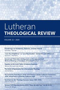 The latest issue of Lutheran Theological Review (vol. 32) has been released. Lutheran Theological Review is an annual journal published by the two seminary faculties of Lutheran Church–Canada. It provides a forum for our professors and pastors to publish their research, and for the seminaries to provide resources and to stimulate the minds of our pastorate and laity. Free copies are sent to every pastor in LCC, and paid subscriptions are available.