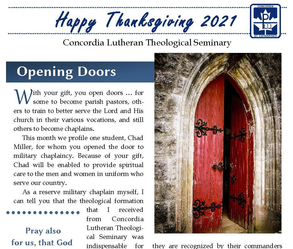 With your gift, you open doors … for some to become parish pastors, others to train to better serve the Lord and His church in their various vocations, and still others to become chaplains.