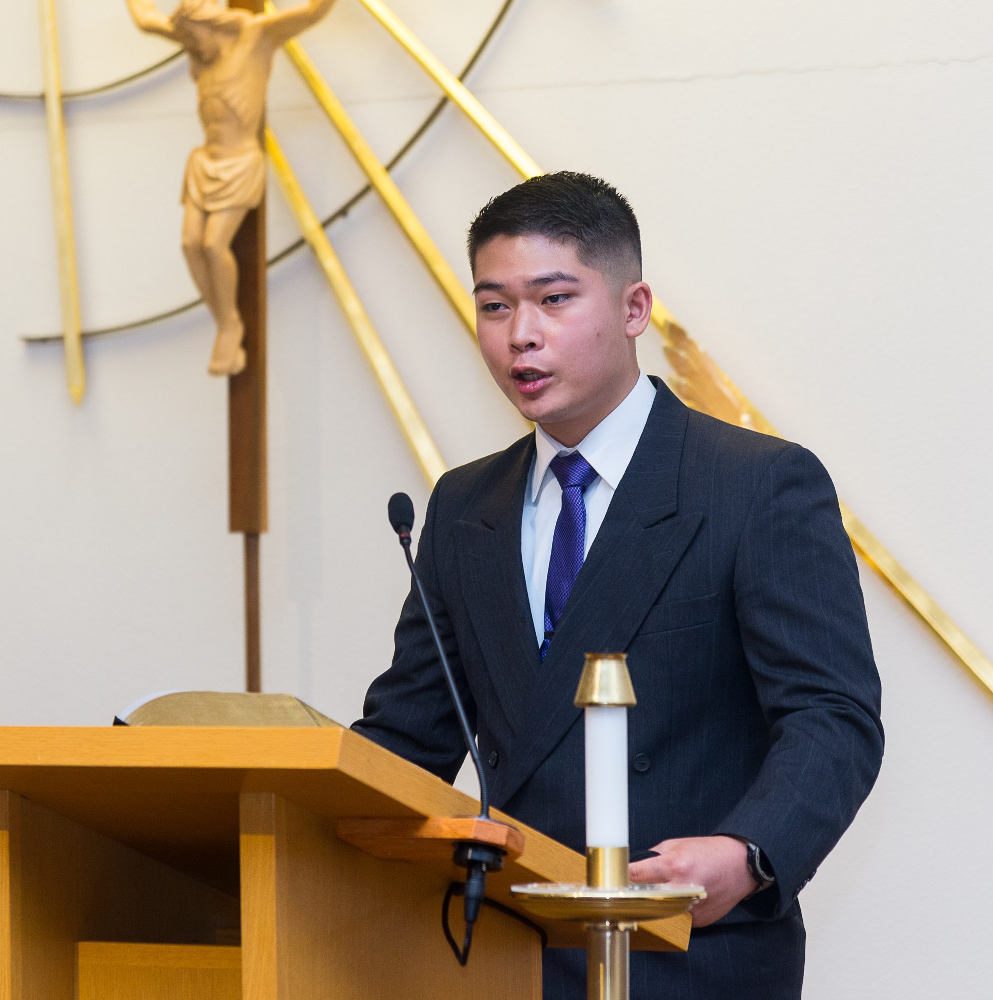 The traditional introduction of students had a different twist. After the local students introduced themselves along with their families, a video collage assembled by seminarian Eduardo Farias was presented, in which all the remote students extended their greetings and thanks. This included students in New York, Maine, Brazil, and China. (Since a recording of the whole event is on our YouTube channel, you can see the resident students introduce themselves at the 1:27:22 mark and view the remote students at the 1:38:50 mark.)
