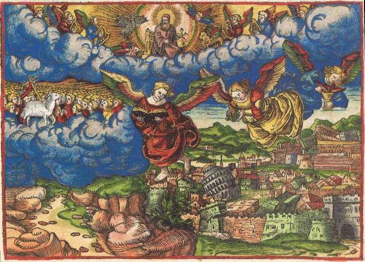 Luther did not seem to have a problem identifying other characters in the Book of Revelation with some of his contemporaries. He was not shy to point to the Roman papacy as the Babylon spoken of in the very next verse: “Fallen, fallen is Babylon the great, she who made all nations drink the wine of the passion of her sexual immorality” (v. 8). Or those who follow the teachings of the papacy in the following verses: “If anyone worships the beast and its image and receives a mark on his forehead or on his hand, he also will drink the wine of God’s wrath” (vv. 9-10). Here might lie some evidence that Luther would have supported the choice of this reading from Revelation 14 for an annual Reformation Day celebration, if it included the following verses and they were given a contemporary interpretation.