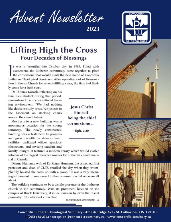 Forty years ago our seminary’s fine new building on the campus of Brock University was dedicated. The Advent newsletter remembers that exhilarating occasion, giving thanks to God, and looking at the ongoing work of preparing servants for His Church.