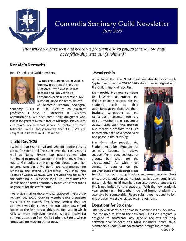 The Seminary Guild’s June newsletter has been been sent in print to reps and congregations who have requested it. The remainder have received it by e-mail. You may also download it now and read it here.