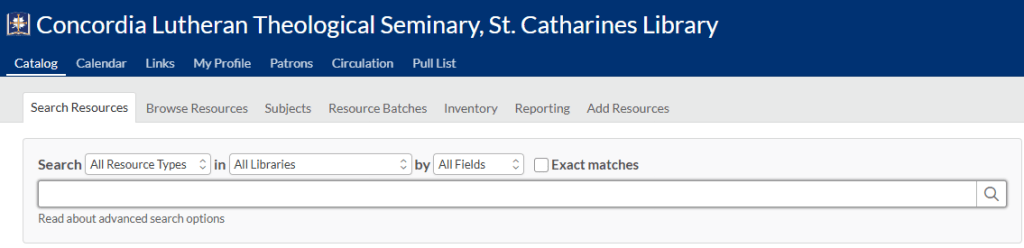 Search the Concordia Lutheran Theological Seminary Library catalogue: