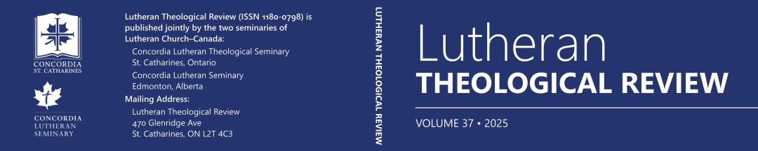 Lutheran Theological Review (ISSN 1180-0798) has been published since 1983. It is jointly produced by the two seminaries of Lutheran Church–Canada, and exists for the discussion of theological issues within the frame of confessional Lutheranism. Print copies are sent to all LCC pastors, seminary alumni, and select libraries. The full text may be downloaded at no cost, and is available for non-commercial use in congregations and educational institutions.