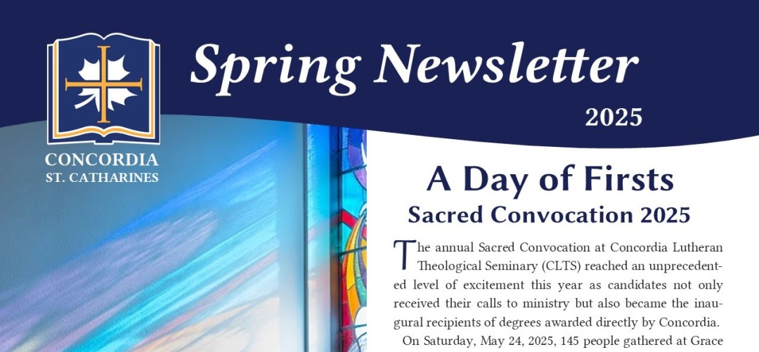 The Spring Newsletter has been sent out into the world. It gives news on our very first Sacred Convocation. Candidates not only received their calls to ministry but also became the inaugural recipients of degrees awarded directly by Concordia. While President Thomas Winger is on Sabbatical, Acting President James Kellerman highlights all the different ways … Continue reading Spring Newsletter 2025: A Day of Firsts