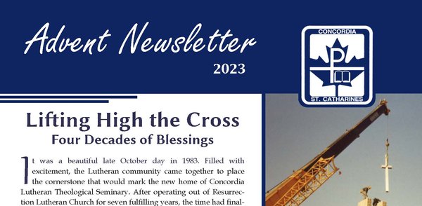 Forty years ago our seminary's fine new building on the campus of Brock University was dedicated. The Advent newsletter remembers that exhilarating occasion, giving thanks to God, and looking at the ongoing work of preparing servants for His Church. The Advent newsletter has been sent out to all congregations in Lutheran Church–Canada. You can read … Continue reading Advent Newsletter 2023